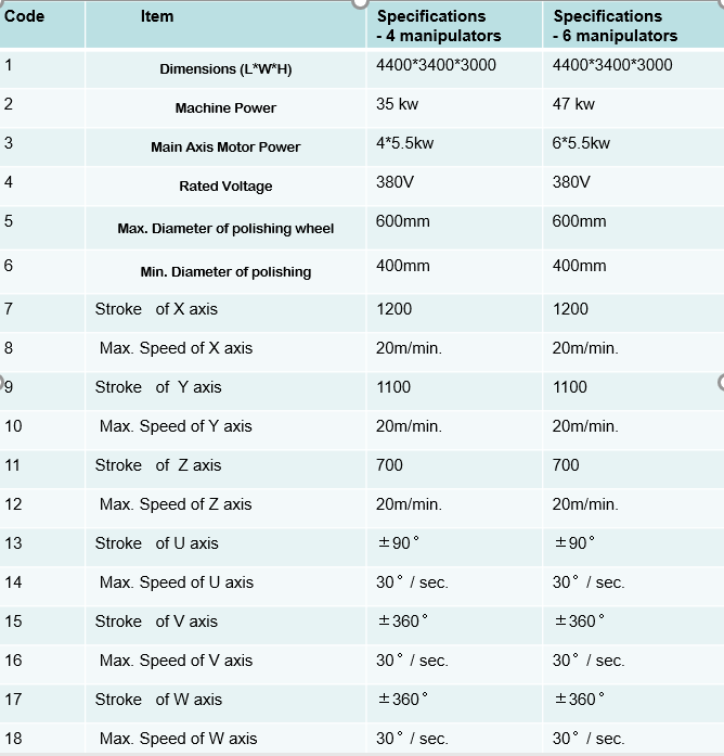 1. Mesin pemoles otomatis adalah sistem pemoles eksklusif yang terdiri dari 4 manipulator dengan 6 sumbu putar; Beberapa stasiun secara bersamaan mengoperasikan fleksibilitas tinggi dan efisiensi produk tinggi. Banyak digunakan dalam saniter, kontrol pintu, produk bidang polishing bagian mobil